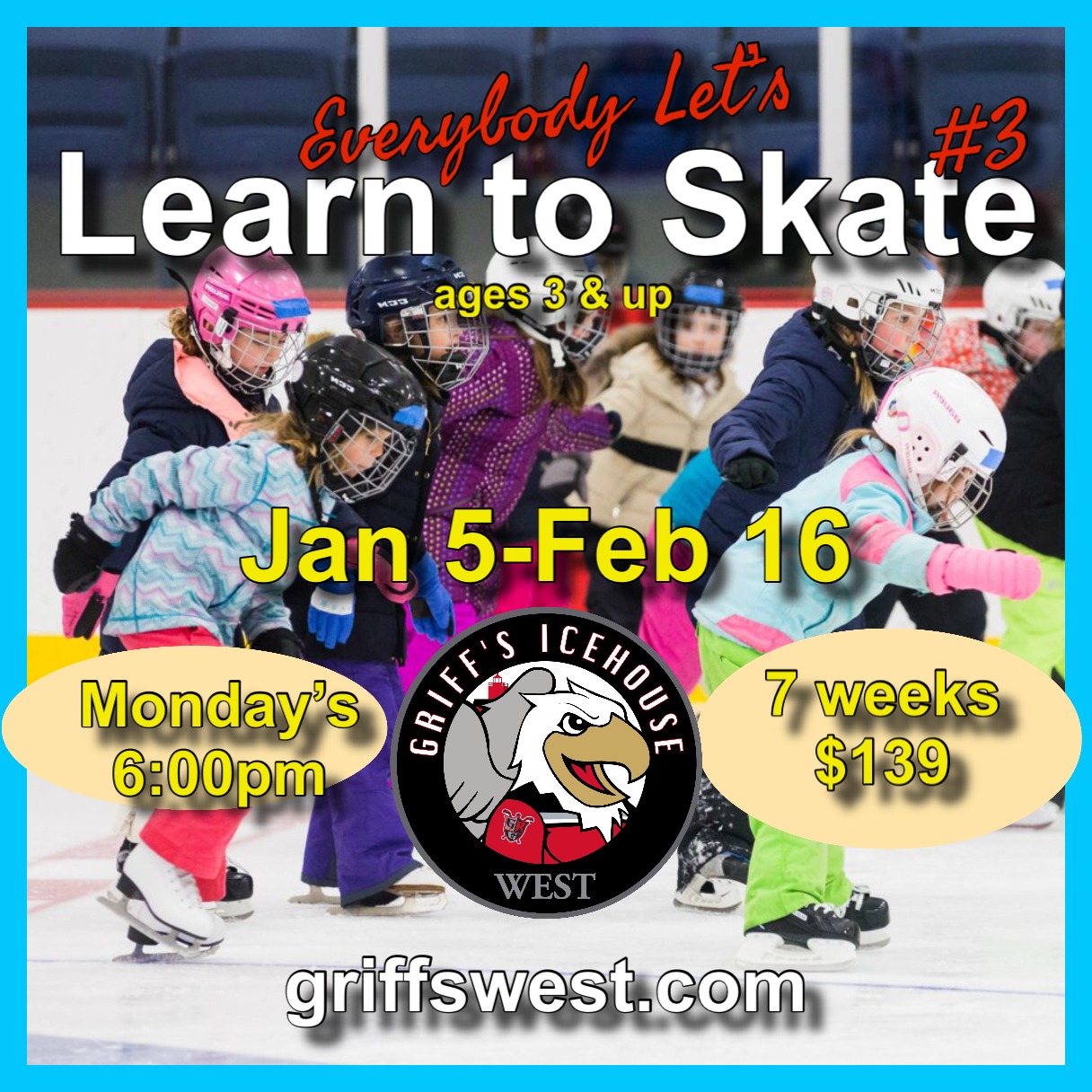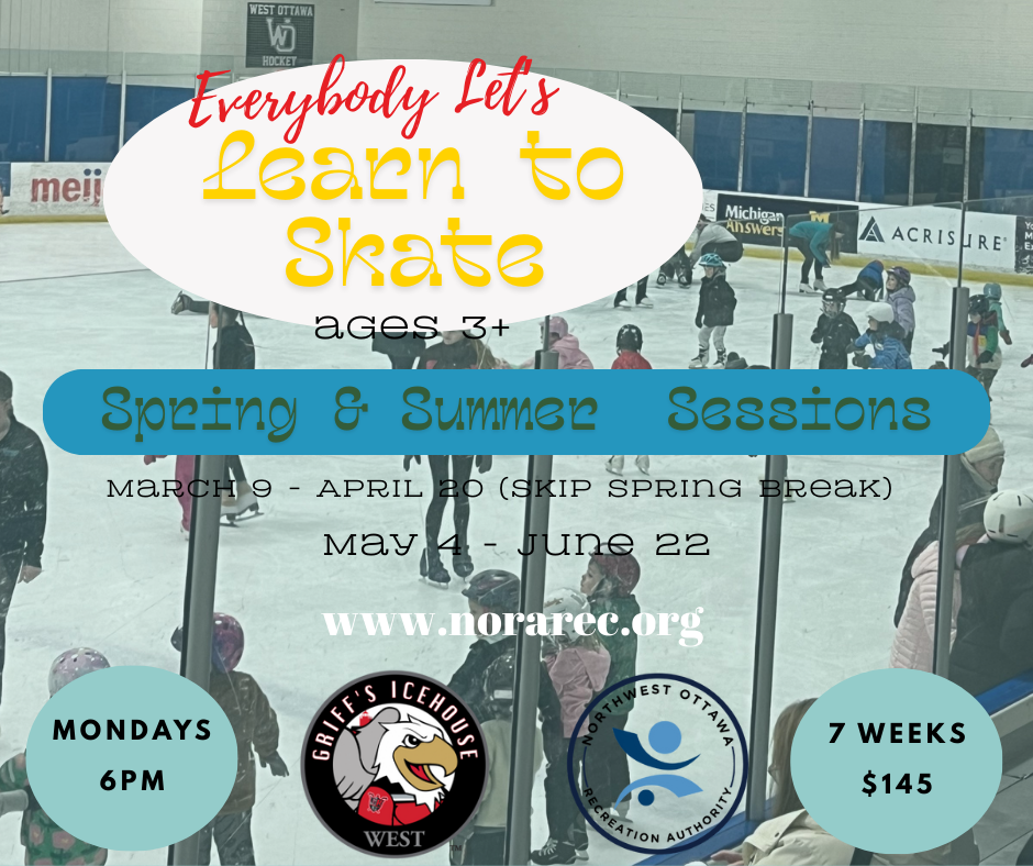 NORA has partnered with Griff's Icehouse West in Holland to offer Learn to Skate Lessons for ages 3+ with skate rental included each week. In addition to learn to skate, we also will occasionally offer Learn to Play sessions where kids can gear up and learn to play hockey.